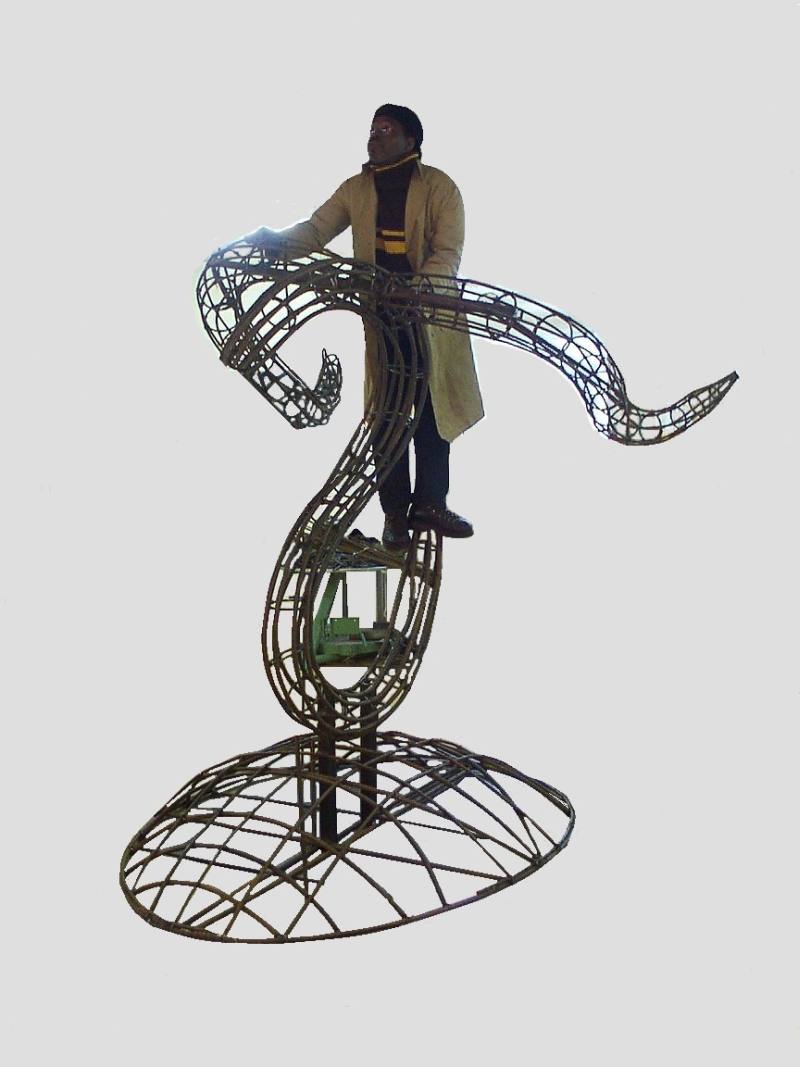 Eerst heeft Salustiano het geraamte opgebouwd uit ijzeren stangen..