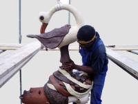 Als de twee koppen zijn geplaatst, kan de afrikaanse vogel Sankofa op haar plek. De sanfoka staat symbool voor vrijheid, maar ook, met de nek naar achteren gebogen, voor "Back to the roots".